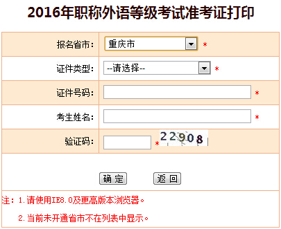 重庆2016职称英语考试准考证打印时间:2016年3月14日至23日 准考证打印入口: 1、中国人事考试网(仅限报考A、B、C级的考生,网址:www.cpta.com.cn) 2、重庆市人力资源和社会保...