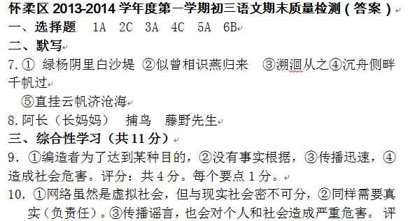 新东方在线中考考试频道为您提供最新的北京怀柔区2013-2014学年初三第一学期期末语文试题答案,以及其它2014中考的试题、答案、资料下载等相关内容,新东方在线为您的中考考试保驾护航...