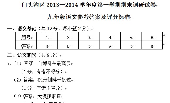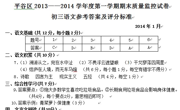 新东方在线中考考试频道为您提供最新的北京平谷区2013-2014学年初三第一学期期末语文试题答案,以及其它2014中考的试题、答案、资料下载等相关内容,新东方在线为您的中考考试保驾护航...