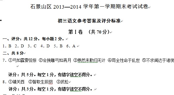 新东方在线中考考试频道为您提供最新的北京石景山区2013-2014学年初三第一学期期末语文试题,以及其它2014中考的试题、答案、资料下载等相关内容,新东方在线为您的中考考试保驾护航。...