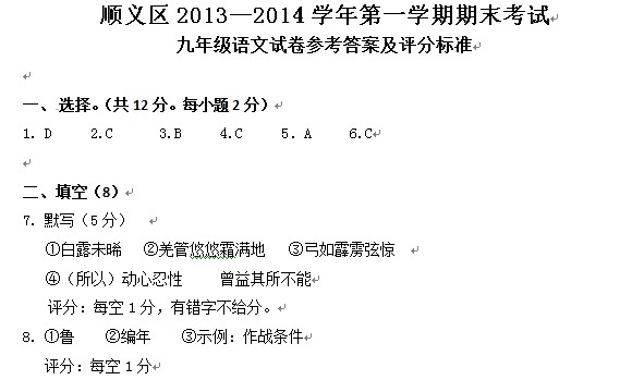 来源 : 中学学科网 01月27日 18:46 关键字 : 2014初三语文期末考试 2014初三语文试题 顺义