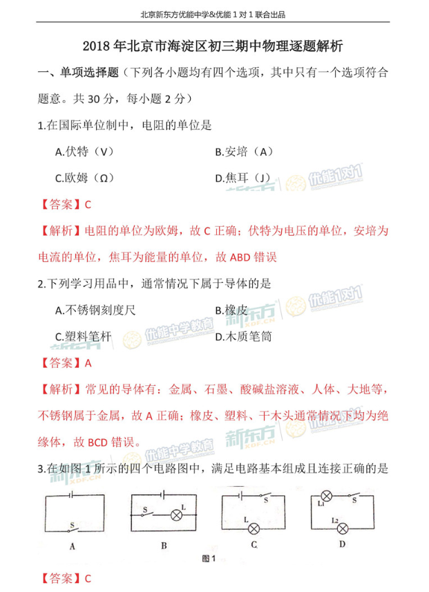 2018-2019学年北京海淀初三期中物理考试已经结束,新东方在线中考网整理了《2018北京海淀初三期中物理试题逐题解析》,供同学们参考。 点击下载:海淀区初三期中考试试题及答案[page]...