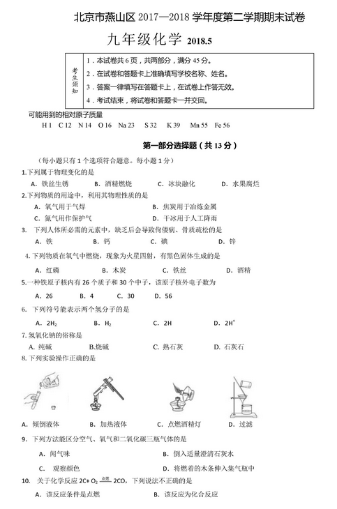 2018北京燕山区中考一模考试已经结束,新东方在线中考网整理了《北京燕山区2018中考化学一模试题及答案》,供同学们和家长参考。 点击下载:北京2018中考一模试题及答案[page][page...