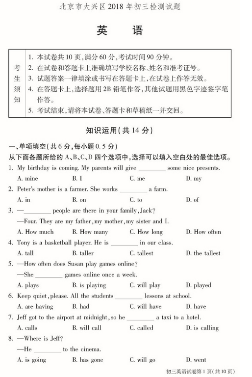 来源 : 网络 05月08日 15:39 关键字 : 2018中考一模试题答案 2018大兴中考一模
