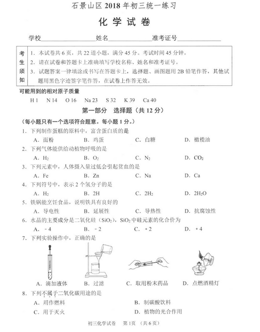 2018北京石景山区中考一模考试已经结束,新东方在线中考网整理了《北京石景山区2018中考化学一模试题及答案》,供同学们和家长参考。 点击下载:北京2018中考一模试题及答案[page][pa...