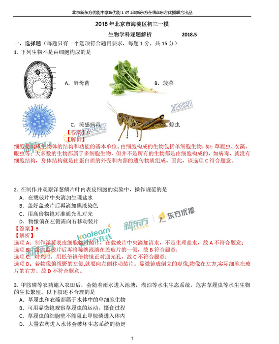 2018北京海淀区中考一模考试已经结束,新东方在线中考网整理了《北京海淀区2018中考生物一模试题及答案》,供同学们和家长参考。 点击下载:北京2018中考一模试题及答案[page][page][...
