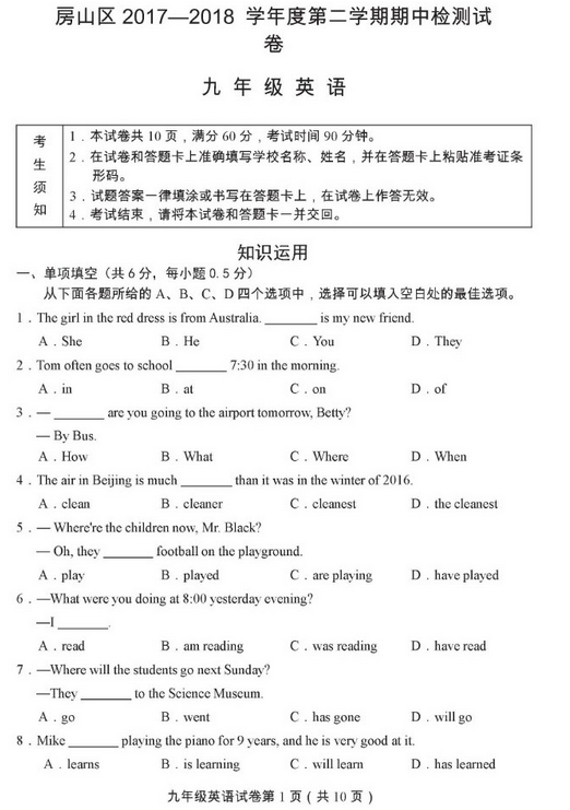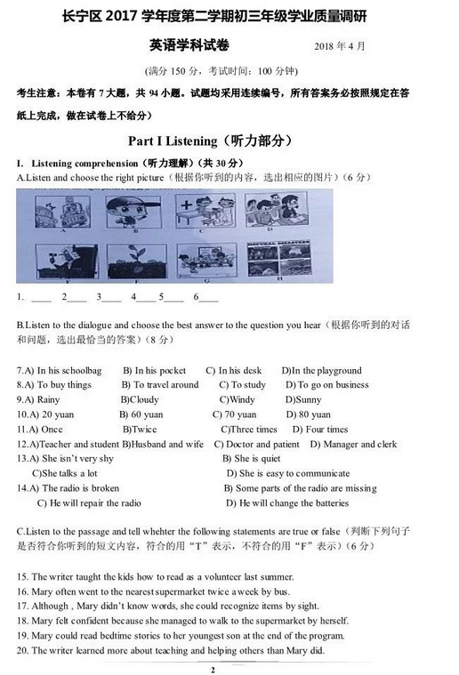 来源 : 网络 05月03日 17:51 关键字 : 2018年中考英语二模试题 长宁区二模试题