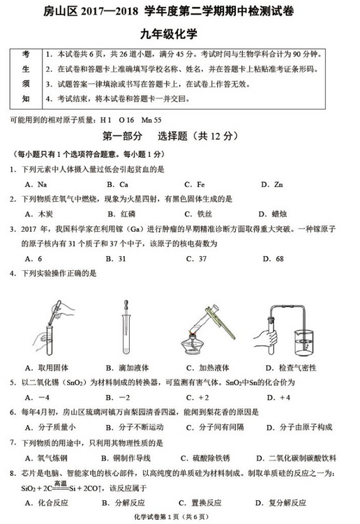 2018北京房山区中考一模考试已经结束,新东方在线中考网整理了《北京房山区2018中考化学一模试题及答案》,供同学们和家长参考。 点击下载:北京2018中考一模试题及答案[page][page][...