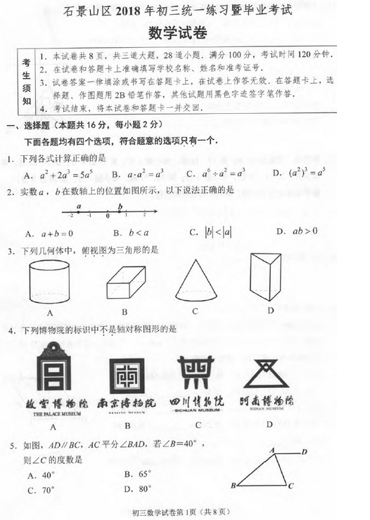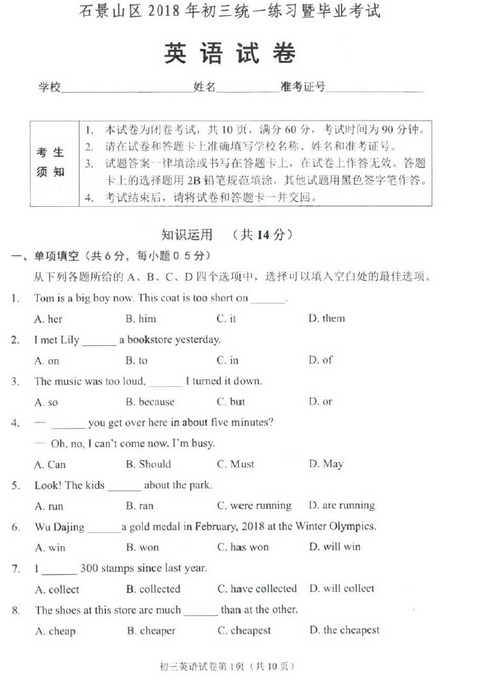 来源 : 网络 05月03日 15:18 关键字 : 2018中考一模试题答案 2018石景山中考一模