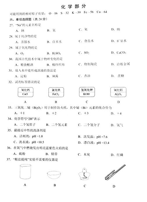 来源 : 网络 01月29日 17:41 关键字 : 2018浦东新区初三一模 初三一模化学试题答案
