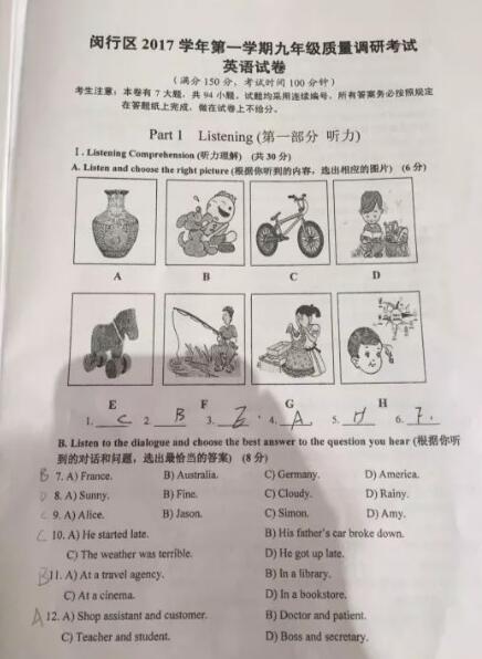 来源 : 网络 01月29日 10:51 关键字 : 2018徐汇区初三一模 初三一模英语试题答案