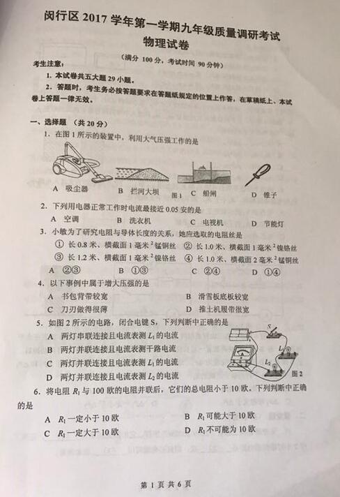 来源 : 网络 01月25日 17:58 关键字 : 2018闵行区初三一模 初三一模物理试题答案