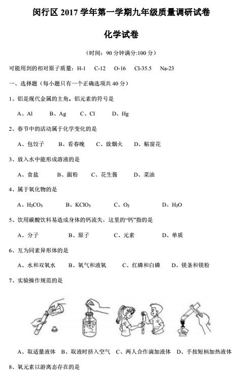 来源 : 网络 01月25日 18:00 关键字 : 2018闵行区初三一模 初三一模化学试题答案