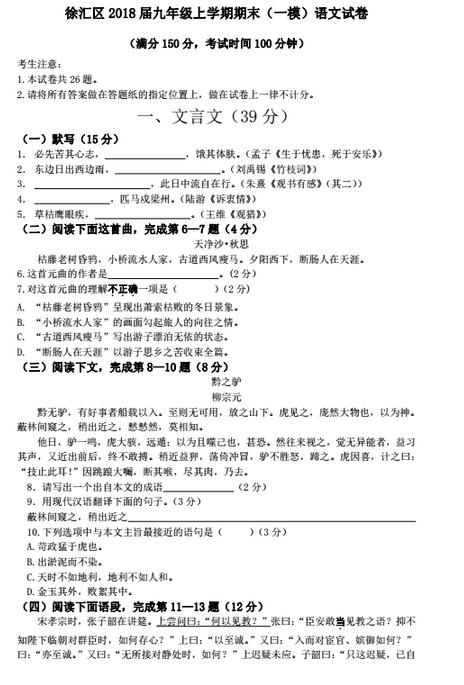 来源 : 网络 01月29日 10:52 关键字 : 2018徐汇区初三一模 初三一模语文试题答案