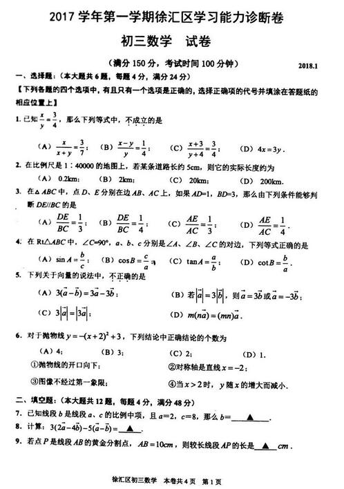 来源 : 网络 01月29日 10:54 关键字 : 2018徐汇区初三一模 初三一模数学试题答案
