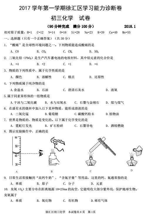 来源 : 网络 01月29日 10:56 关键字 : 2018徐汇区初三一模 初三一模化学试题答案