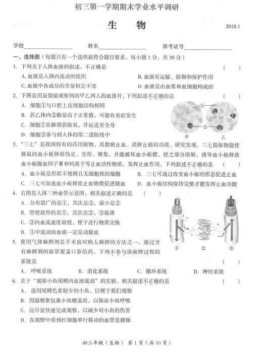 北京西城区2018初三生物期末考试已经结束,新东方在线中考整理了《2018年北京西城区初三期末生物试题及答案》,供同学们参考。 点击下载:2018北京各区期末考试试题及答案汇总[page][...