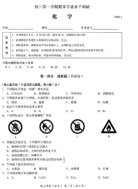 来源 : 网络 01月17日 15:46 关键字 : 2018丰台初三期末化学试题 初三期末化学答案