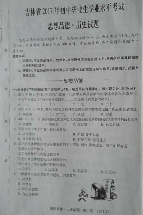 来源 : 网络 08月18日 16:10 关键字 : 通化中考试题 通化中考政治试题答案