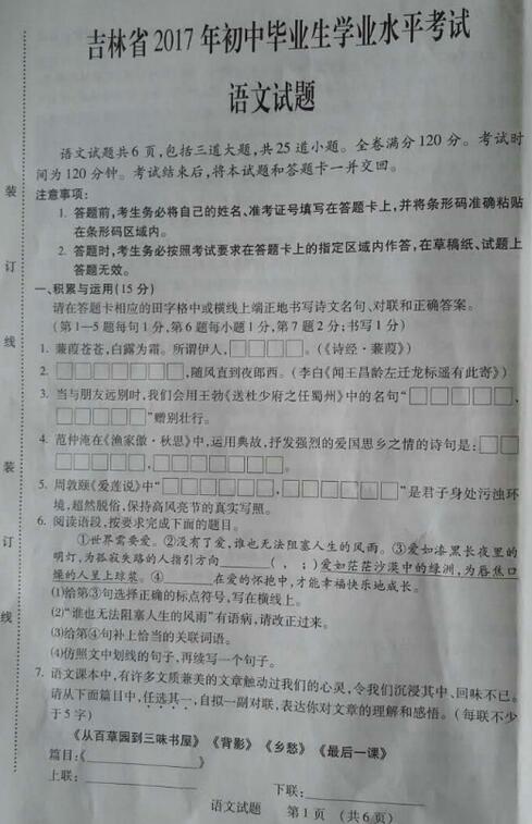 来源 : 网络 08月21日 12:07 关键字 : 吉林中考试题 吉林中考语文试题答案