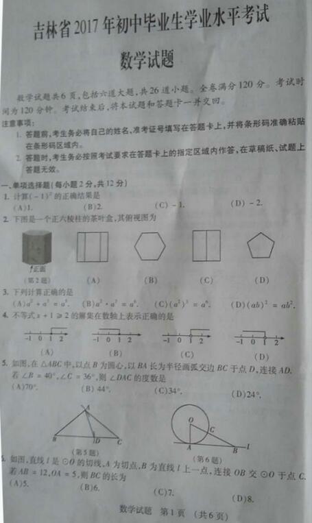 2017各地中考陆续举行,新东方在线中考网将第一时间整理中考试题及答案,供中考生们参考。下面是《吉林白城2017中考数学试题及答案》,更多2017年吉林白城中考试题及答案可查看2017中考试...