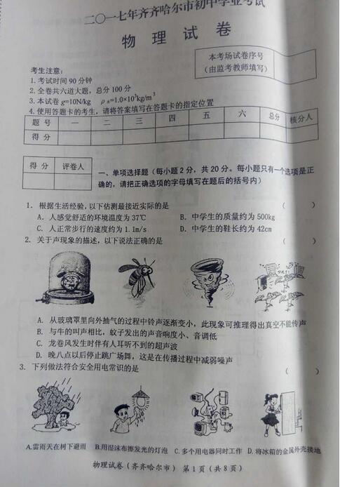 2017各地中考陆续举行,新东方在线中考网将第一时间整理中考试题及答案,供中考生们参考。下面是《黑龙江大兴安岭2017中考物理试题及答案》,更多2017年黑龙江大兴安岭中考试题及答案可查...
