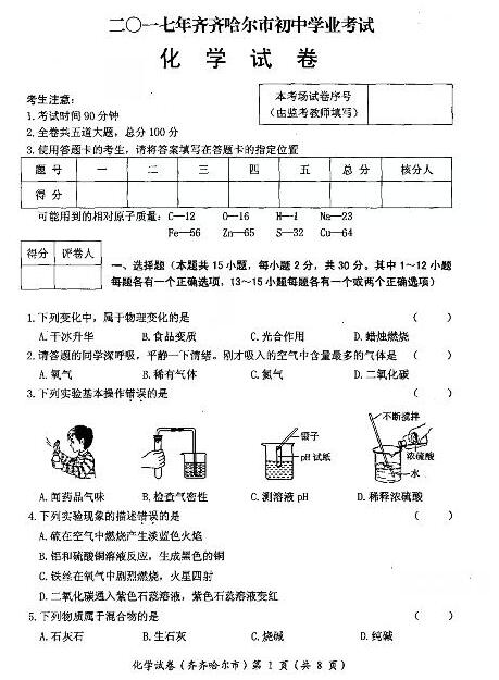 2017各地中考陆续举行,新东方在线中考网将第一时间整理中考试题及答案,供中考生们参考。下面是《黑龙江大兴安岭2017中考化学试题及答案》,更多2017年黑龙江大兴安岭中考试题及答案可查...