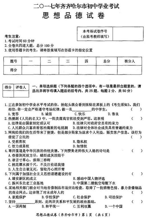 2017各地中考陆续举行,新东方在线中考网将第一时间整理中考试题及答案,供中考生们参考。下面是《黑龙江大兴安岭2017中考政治试题及答案》,更多2017年黑龙江大兴安岭中考试题及答案可查...