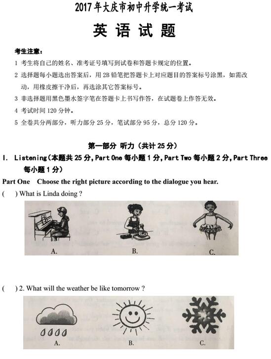 2017各地中考陆续举行,新东方在线中考网将第一时间整理中考试题及答案,供中考生们参考。下面是《黑龙江大庆2017中考英语试题及答案》,更多2017年黑龙江大庆中考试题及答案可查看2017中...