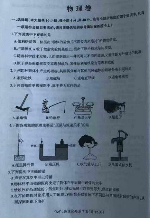 来源 : 网络 08月16日 11:32 关键字 : 七台河中考试题 七台河中考物理试题答案