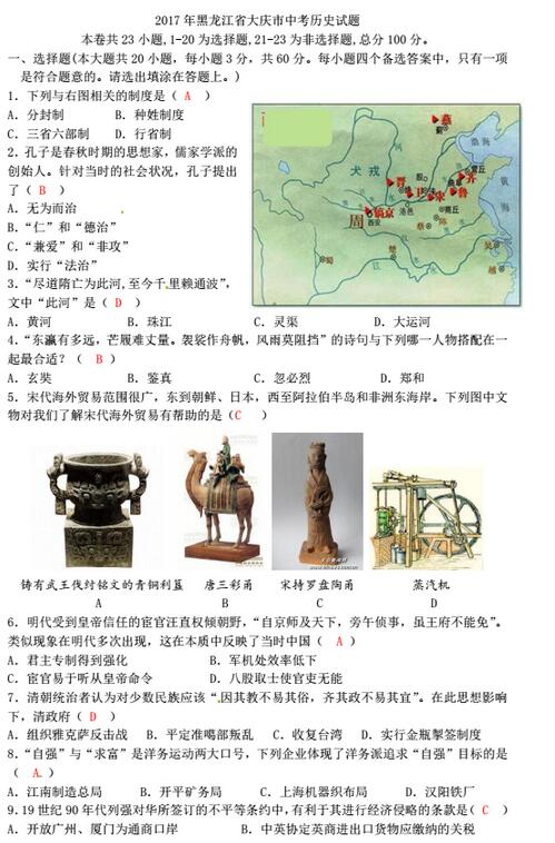 来源 : 网络 08月16日 10:27 关键字 : 大庆中考试题 大庆中考历史试题答案