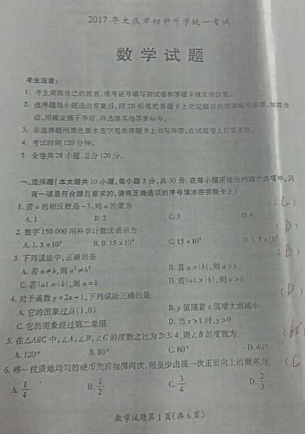 来源 : 08月16日 09:48 关键字 : 大庆中考试题 大庆中考数学试题答案