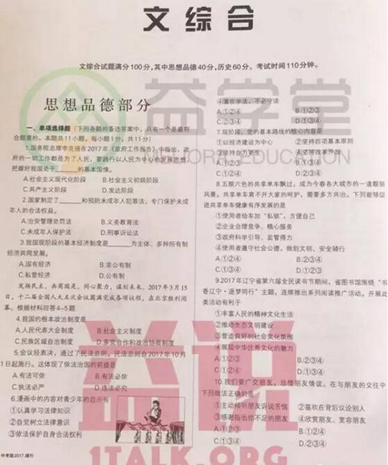 2017各地中考陆续举行,新东方在线中考网将第一时间整理中考试题及答案,供中考生们参考。下面是《辽宁沈阳2017中考思想品德试题及答案》,更多2017年辽宁沈阳中考试题及答案可查看2017中...