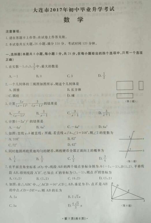 来源 : 网络 08月14日 14:46 关键字 : 大连中考试题 大连中考数学试题答案