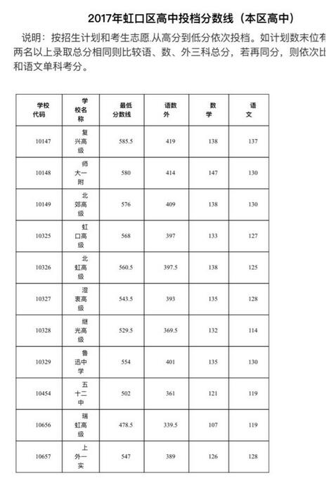 各地2017中考分数线已经陆续公布,新东方在线中考网整理了《上海虹口区“普通高中”2017中考录取分数线》,供同学们和家长参考。更多关于中考录取分数线的信息可点击2017中考成绩查询及...