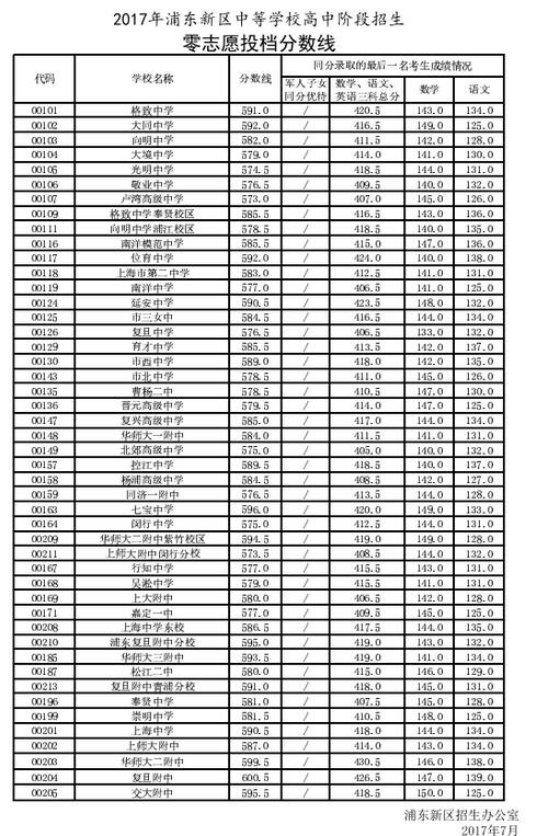 各地2017中考分数线已经陆续公布,新东方在线中考网整理了《上海浦东新区“零志愿”2017中考录取分数线》,供同学们和家长参考。更多关于中考录取分数线的信息可点击2017中考成绩查询及...