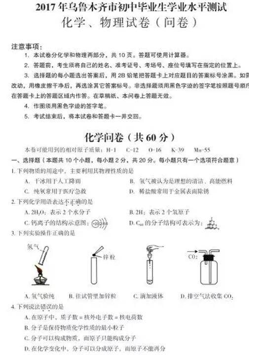 2017各地中考陆续举行,新东方在线中考网将第一时间整理中考试题及答案,供中考生们参考。下面是《新疆乌鲁木齐2017中考化学试题及答案》,更多2017年新疆乌鲁木齐中考试题及答案可查看20...