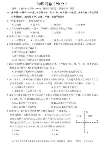 2017各地中考陆续举行,新东方在线中考网将第一时间整理中考试题及答案,供中考生们参考。下面是《新疆乌鲁木齐2017中考物理试题及答案》,更多2017年新疆乌鲁木齐中考试题及答案可查看20...
