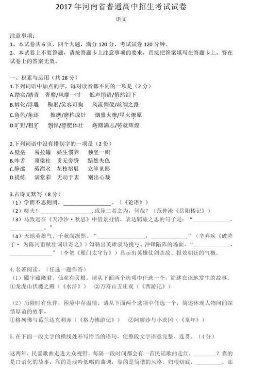 来源 : 网络 06月27日 16:38 关键字 : 河南中考试题 河南中考英语试题答案