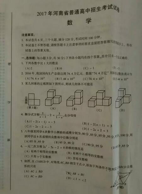 2017各地中考陆续举行,新东方在线中考网将第一时间整理中考试题及答案,供中考生们参考。下面是《河南2017中考化学试题及答案》,更多2017年河南中考试题及答案可查看2017中考试题及答案...