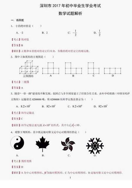 来源 : 网络 06月27日 15:09 关键字 : 深圳中考试题 深圳中考数学试题答案