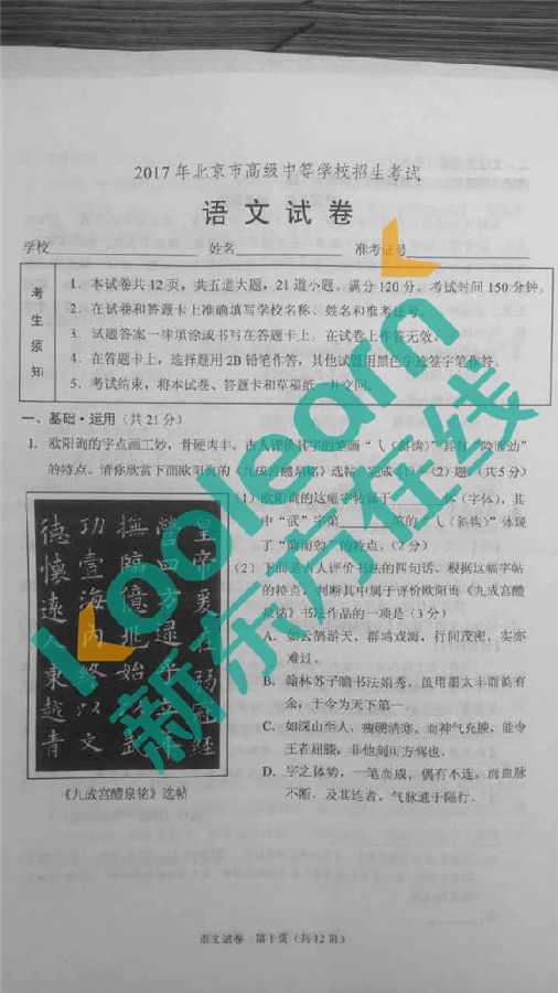 2017北京中考语文试卷及答案将于考试后公布,2017北京中考语文试卷及答案是同学们和家长了解考试情况的重要依据。新东方在线中考网将第一时间为大家整理并发布《高清:2017年北京语文中...