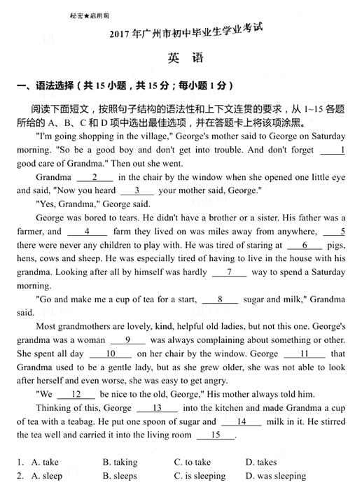 2017各地中考陆续举行,新东方在线中考网将第一时间整理中考试题及答案,供中考生们参考。下面是《广东广州2017中考化学试题及答案》,更多2017年广东广州中考试题及答案可查看2017中考试...