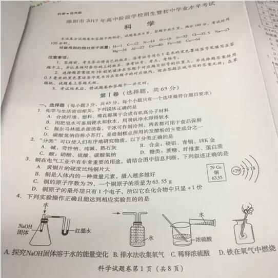 2017各地中考陆续举行,新东方在线中考网将第一时间整理中考试题及答案,供中考生们参考。下面是《四川绵阳2017中考化学试题及答案》,更多2017年四川绵阳中考试题及答案可查看2017中考试...