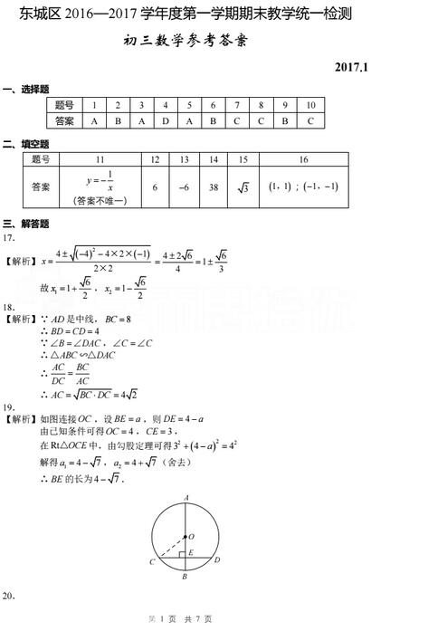 来源 : 网络 01月13日 14:12 关键字 : 2017东城初三期末数学试题 初三期末数学答案