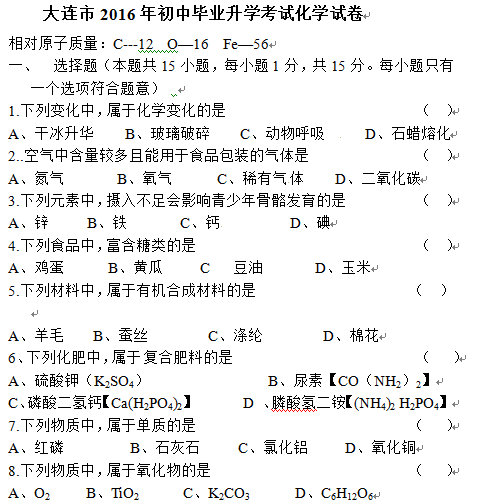来源 : 网络 07月14日 16:04 关键字 : 大连中考化学答案 2016中考试题及答案