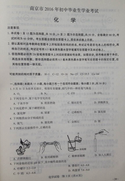 来源 : 网络 06月22日 11:11 关键字 : 南京中考化学试题及答案 2016中考