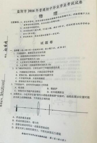 来源 : 网络 06月21日 18:05 关键字 : 湖南益阳中考物理试题及答案 2016中考
