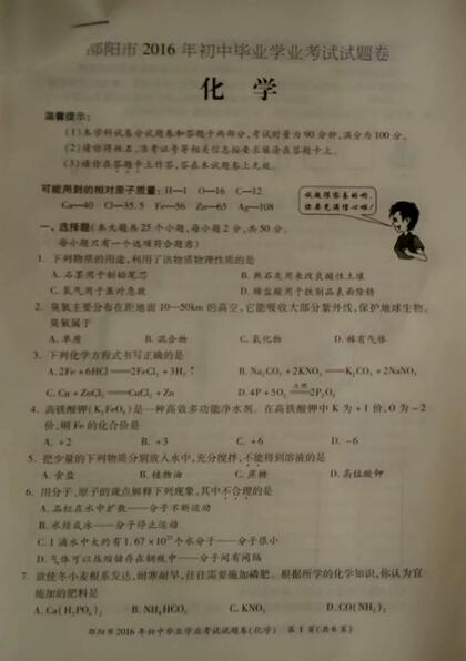来源 : 网络 06月20日 17:49 关键字 : 湖南邵阳中考化学试题及答案 2016中考