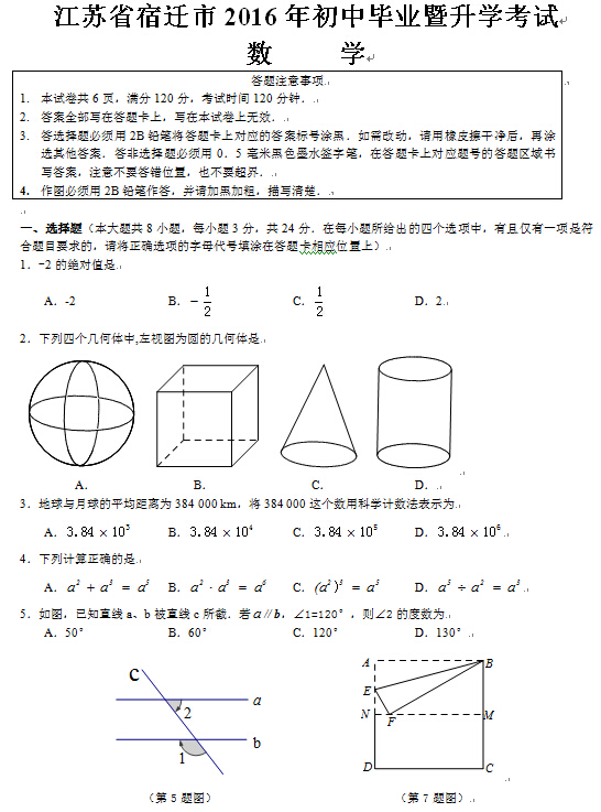 来源 : 网络 06月20日 11:48 关键字 : 宿迁中考数学试题及答案 2016中考